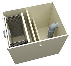Жироуловитель – специализированное устройство для очищения сточных вод от твердых примесей и масляных частиц. Внутреннее устройство жироуловителя представляет собой герметичный пластиковый короб, состоящий из трех камер. Сточные воды направляются в среднюю камеру, в которой происходит распадание примесей: масляные примеси поднимаются наверх, а твердые примеси опускаются вниз. В конечном счете, очищенная вода остается на среднем уровне и поступает в отводящую трубу.